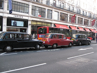 (Below) Regent Street. Why is one lane of Regent Street devoted to free black cab parking, when this very wide road is cycling-hostile, with no infrastructure?
